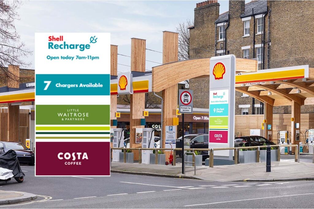 In January 2022, Shell made headlines when the company opened its first EV hub on Fulham Road, London. The site which features 9 high powered, 175kW charge points also happens to be the largest in the world and is powered entirely by 100% certified renewable energy. The station also features a Little Waitrose & Partners convenience store and a Costa Coffee and well as comfortable seating and free wi-fi.