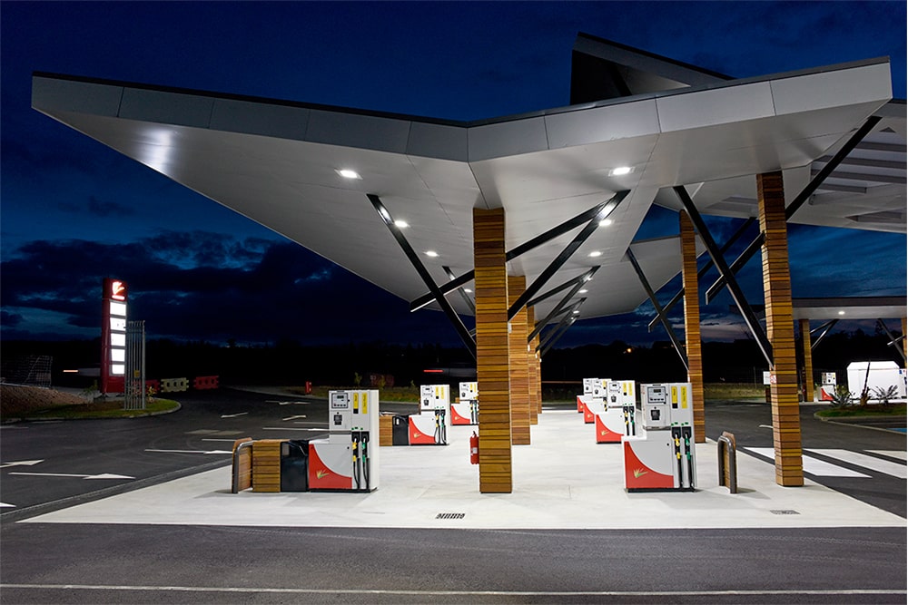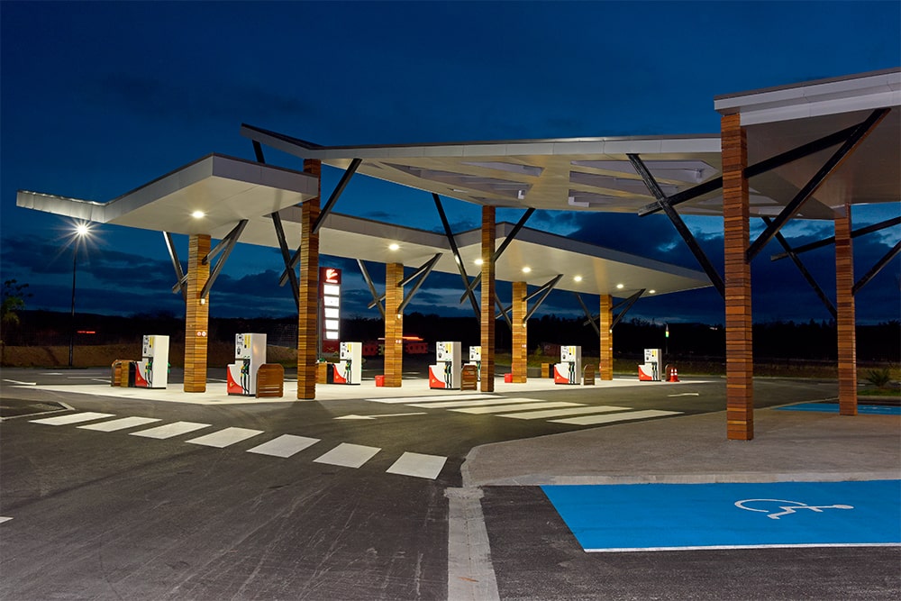 Op dit eiland, vlakbij Australië, wordt een prachtig tankstation verlicht door onze LS LED Luifelverlichting. Het heldere witte licht accentueert de kenmerken van het station en geeft de bezoekers een veilig en verwelkomend gevoel.